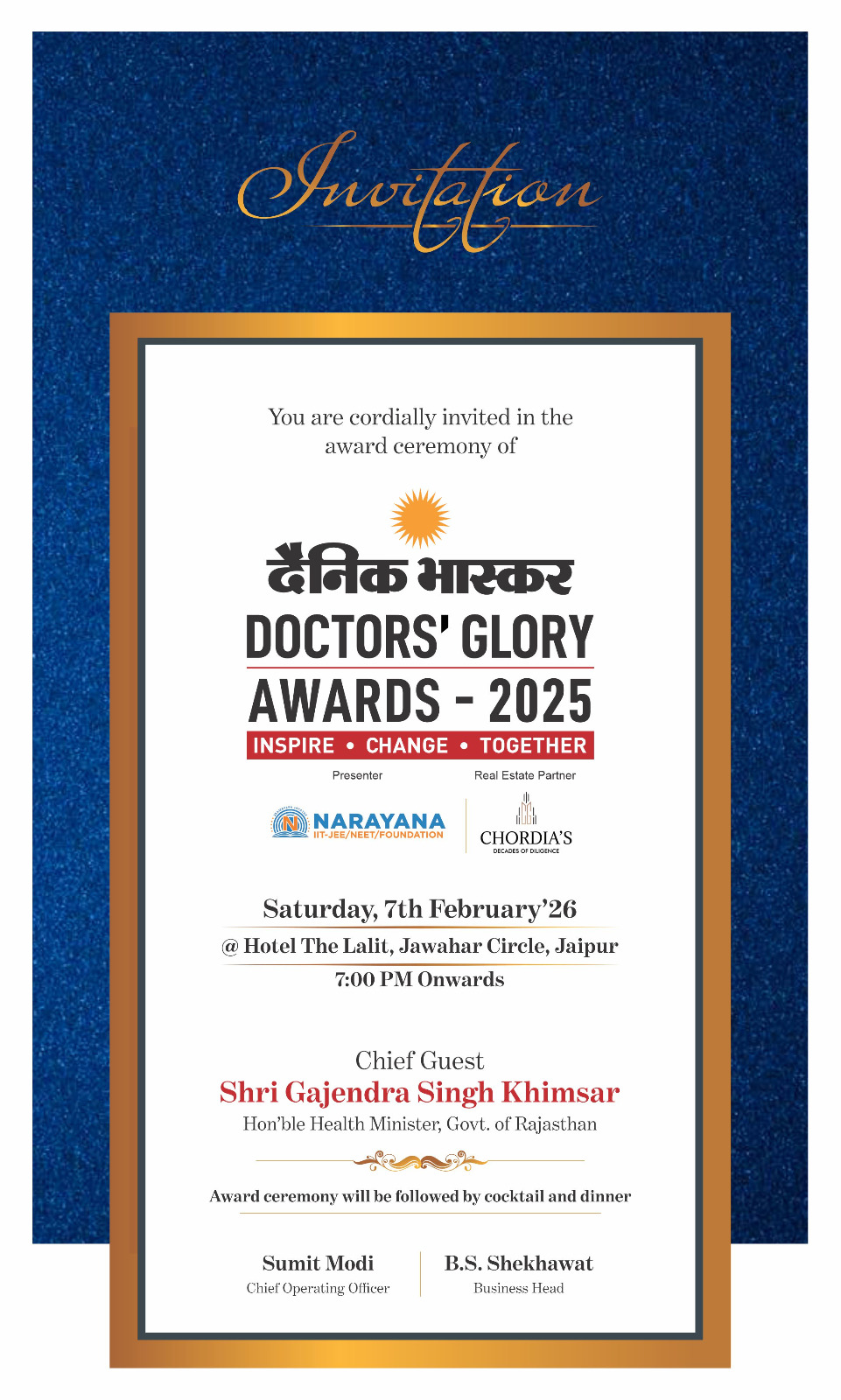 Awarded with best oncologist in Rajasthan award by health minister of Rajasthan organised by